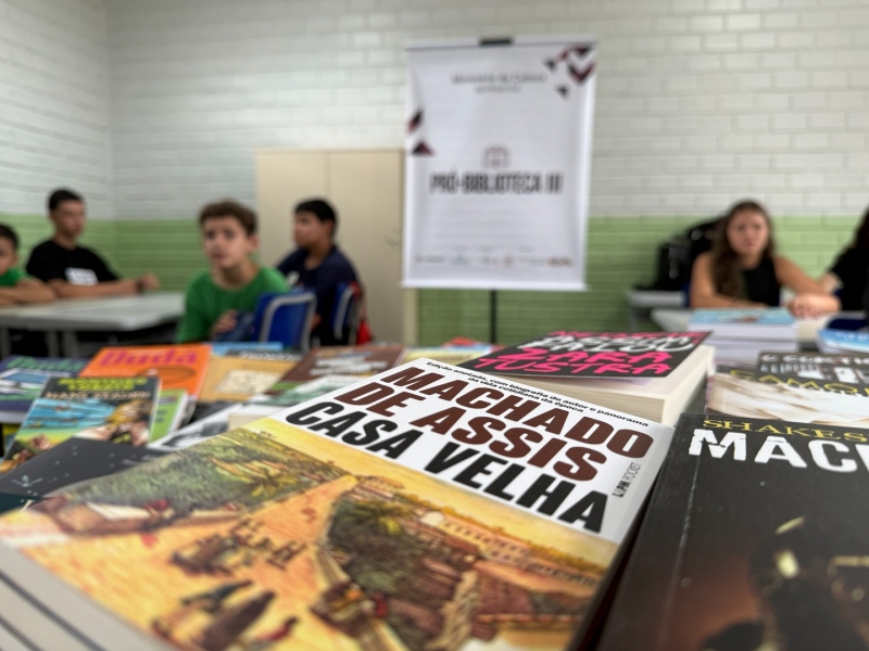 “Eu achei muito legal. Isso ajuda bastante nós aqui na escola. Eu gosto de livro de ação”, afirma o estudante Felipe Maleszyk Ribeiro, 11 anos, ao destacar o interesse pelos novos títulos disponíveis.